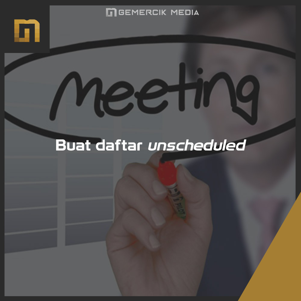 Untuk membuat sebuah unschedule, ambil sebuah kalender kosong untuk seminggu ke depan, jadwalkan semua aktifitas rekreasi, istirahat, makan, tidur, acara sosial, dan sebagainya lalu biarkan sisanya. Dengan menuliskan unscheduledanda akan menyadari bahwa anda memiliki waktu untuk melakukan aktifitas diluar pekerjaan dan waktu didalam pekerjaan. Dengan ini anda akan memiliki waktu yang teratur untuk melakukan rekreasi, tidur, istirahat dan lain-lain serta waktu untuk melakukan pekerjaan. Lakukanlah hal ini setiap minggu hingga anda akan memiliki perencanaan yang matang terhadap hal-hal yang harus anda kerjakan setiap harinya.