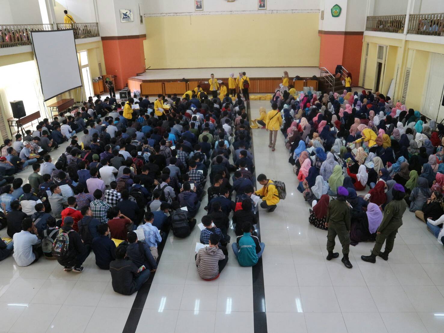07.30 WIB Panitia dari pihak mahasiswa didampingi oleh beberapa perwakilan dari Lembaga, memulai kegiatan dengan mengabsen satu persatu Maba. Hanya bermodalkan toa dan sound untuk mengabsen, begitu menghambat kegiatan tersebut. Satu persatu Maba memasuki Gedung Mandala untuk mengambil jas almamater dan buku panduan. Namun mahasiswa baru dengan jalur Ujian Mandiri masih belum bisa mengambil jas almamaternya.