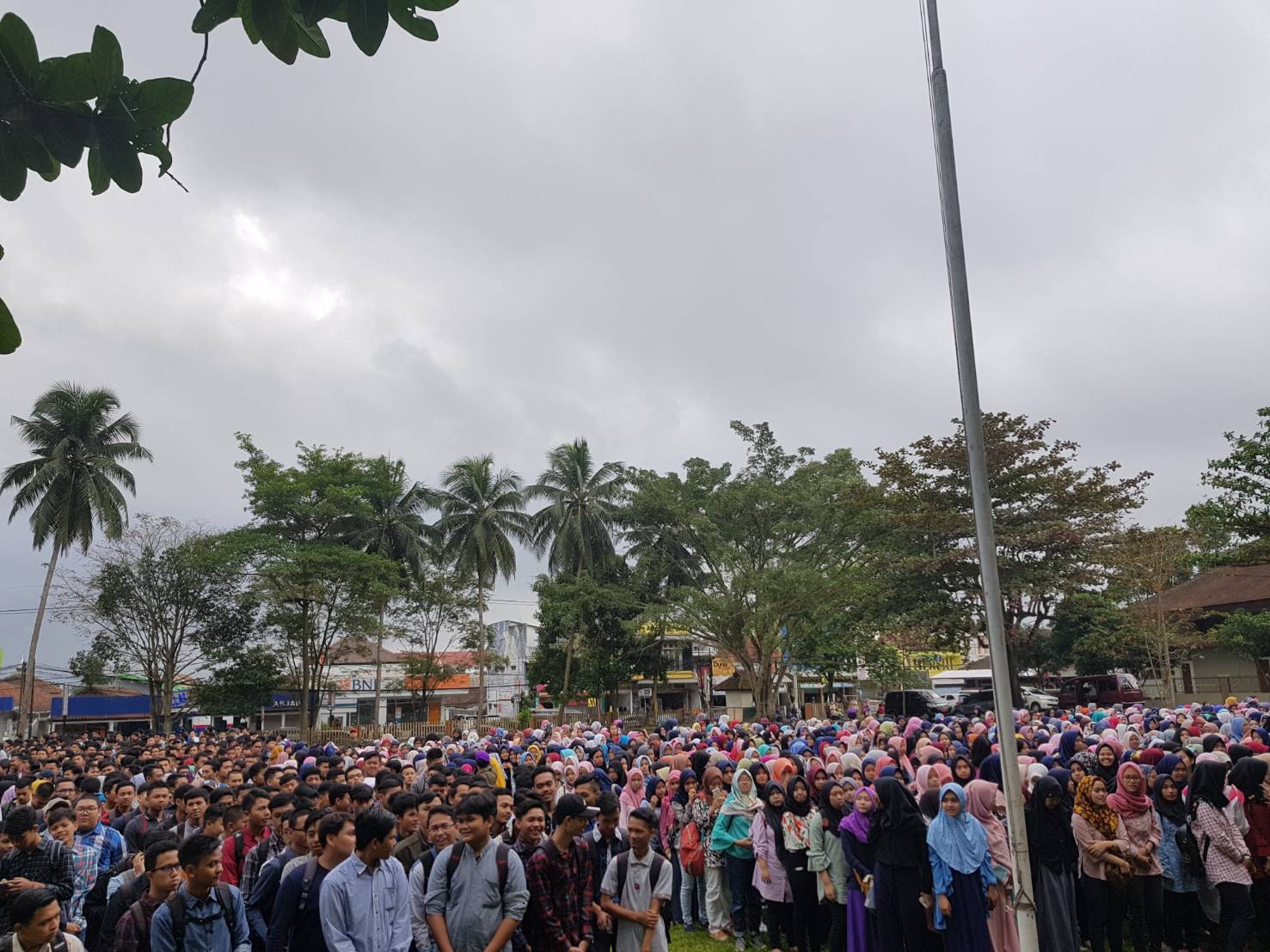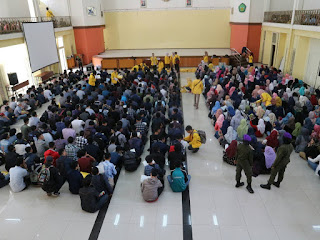 Suasana mahasiswa baru 2017 saat dikumpulkan di Lapangan Utama Universitas Siliwangi untuk mengambil jas almamater di Gedung Mandala. (Jumat, 04 Agustus 2017) sumberfoto:Allifiana