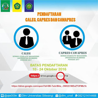 Bagi Mahasiswa Universitas Siliwangi yang ingin memberikan pesan dan harapan untuk CALEG, CAPRES beserta CAWAPRES 2017, silahkan kirim ke redaksi.persmaunsil@gmail.com