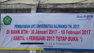 Dalam kertas yang dipasang di halaman Bank BTN Sutisna Senjaya terdapat informasi bahwa pembayaran dapat dilakukan pula di Gedung Mandala Universitas Siliwangi. Saat ditanya mengenai hal tersebut, Doni mengatakan kurang mengetahui hal tersebut karena masih belum fix.
