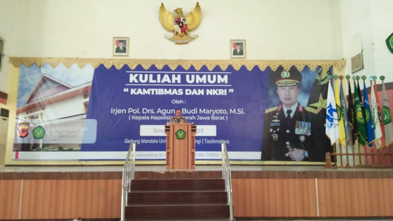 Gemercik News-Tasikmalaya (26/02) Universitas Siliwangi kembali menyelenggarakan kuliah umum dengan tema “KAMTIBMAS DAN NKRI”. Kuliah umum yang diselenggarakan di Gedung Mandala tersebut menghadirkan KAPOLDA Jawa Barat Irjen Pol. Drs. Agung Budi Maryoto, M.Si. sebagai pembicara.