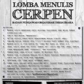 BADAN PENGAWAS ORGANISASI DIKSATRASIA Mempersembahkan LOMBA MENULIS CERPEN bertema “ORGANISASI”.