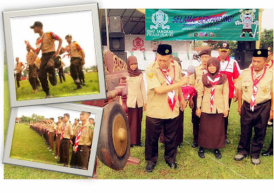 Keterangan Photo : Rudi Priyadi, Rektor Universitas Siliwangi Tasikmalaya Memukul Goong Tanda acara Giat Tangkas Pramuka Unsil Tingkat Penggalang Dan Penegak Se-Jabar Dibuka pada Hari Jumat (15/5/2015).