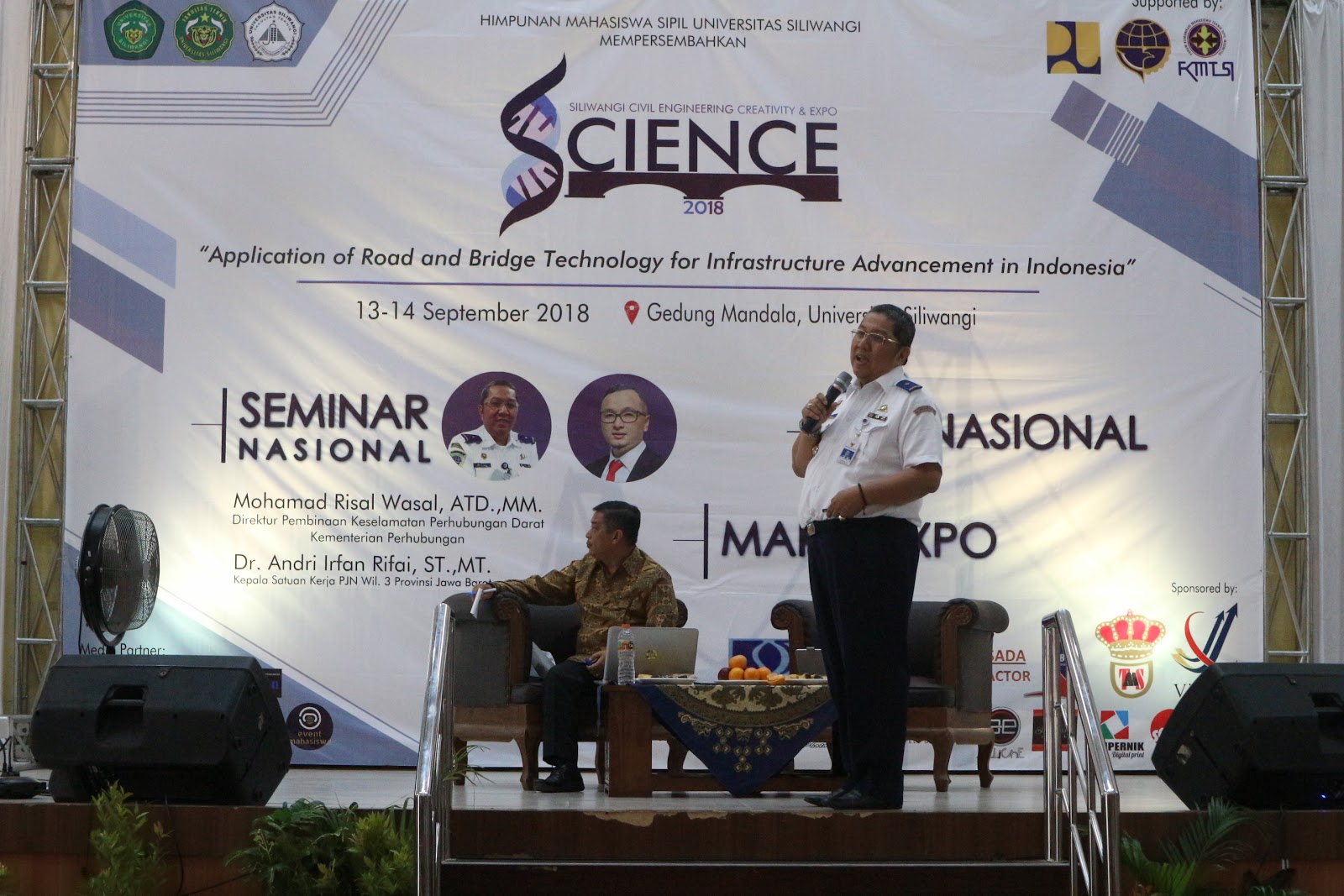 Sektio Mukti Wibowo, selaku ketua pelaksana SCIENCE 2018 memaparkan rangkain acaranya. Tanggal 13 September, diisi dengan acara Seminar Nasional dengan pembicara Mohamad Risal Wasal, ATD.,MM. Direktur Pembinaan Keselamatan Perhubungan Darat Kementerian Perhubungan dan Dr. Andri Irfan Rifai, ST.,MT. selaku Kepala Satuan Kerja PJN Wilayah 3 Provinsi Jawa Barat. Tanggal 14 September, dilanjut dengan Lomba Karya Tulis Ilmiah Tingkat Nasional, yaitu presentasi LKTI dan Maket Expo yang memamerkan maket para peserta. Peserta lomba maket terdiri dari 6 kelompok yang merupakan mahasiswa teknik sipil Universitas Siliwangi angkatan 2017.